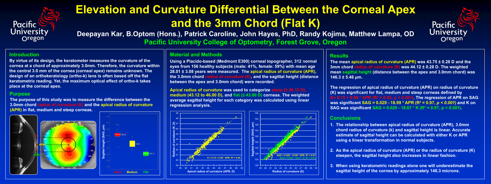 Elevation and Curvature Differential Between Corneal Apex and the 3mm Chord (Flat K)